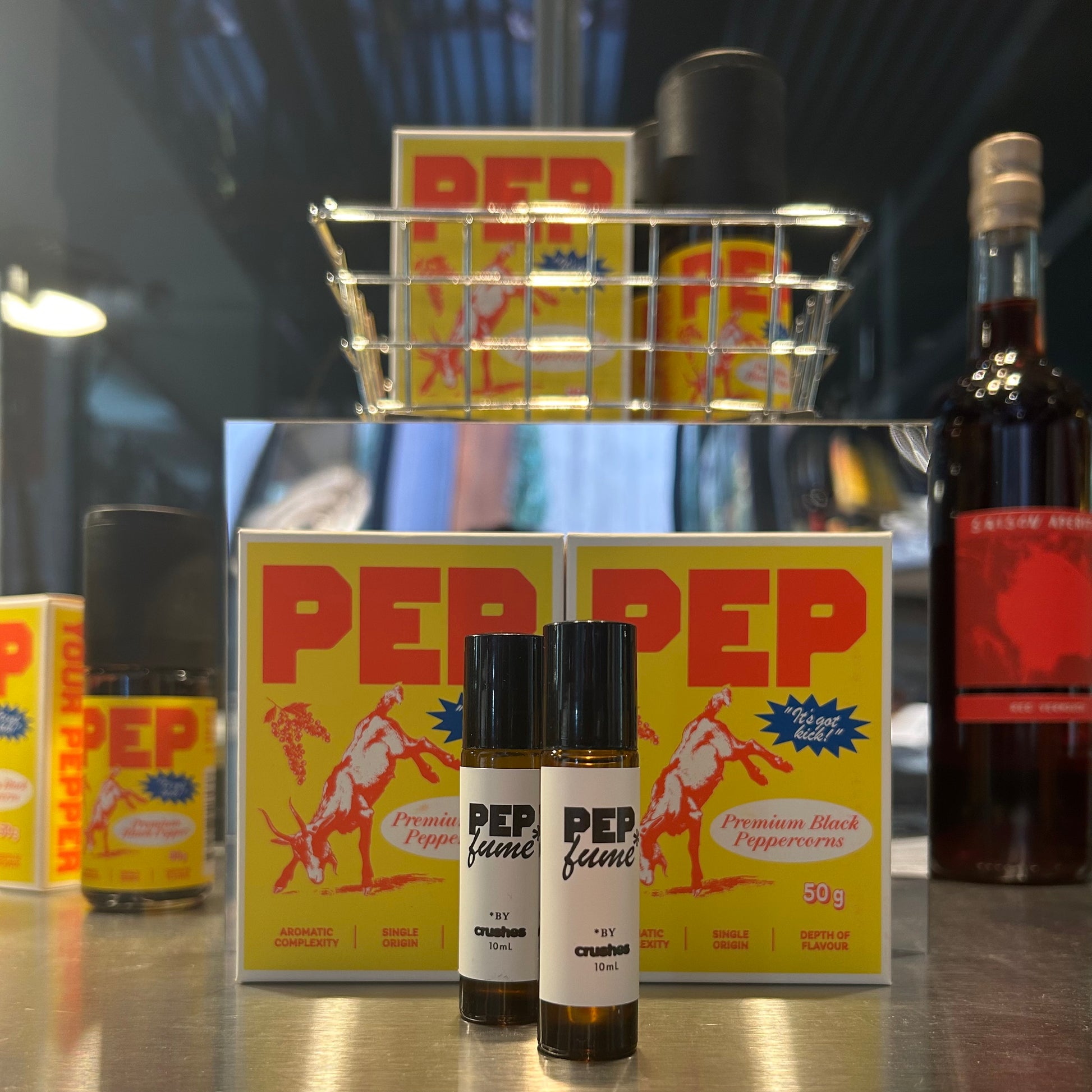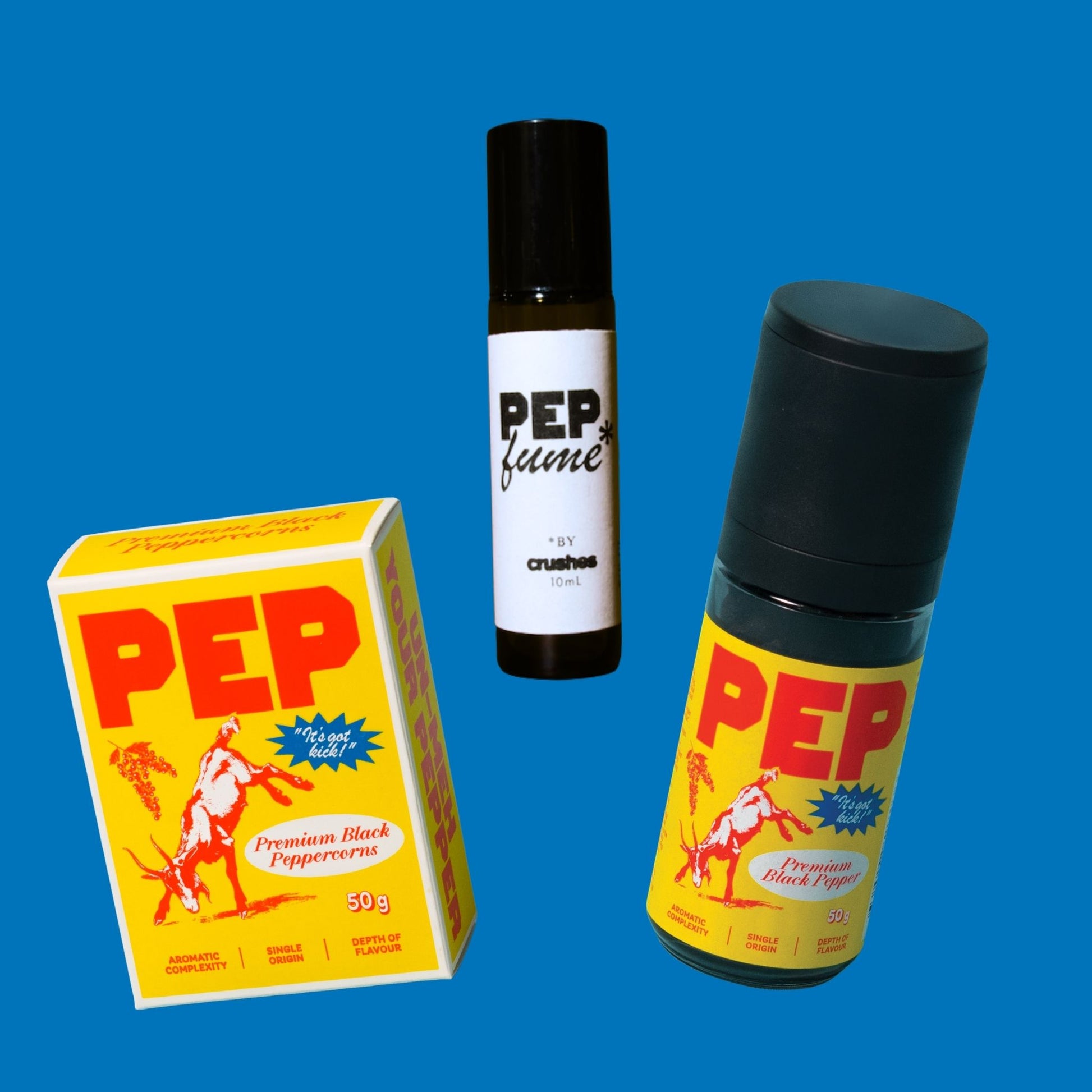 With your Pep black pepper grinder and refill pack comes one bottle of PEPfume - a limited edition collaboration between Pep and Crushes Studio florist & perfumer Briony Wright.